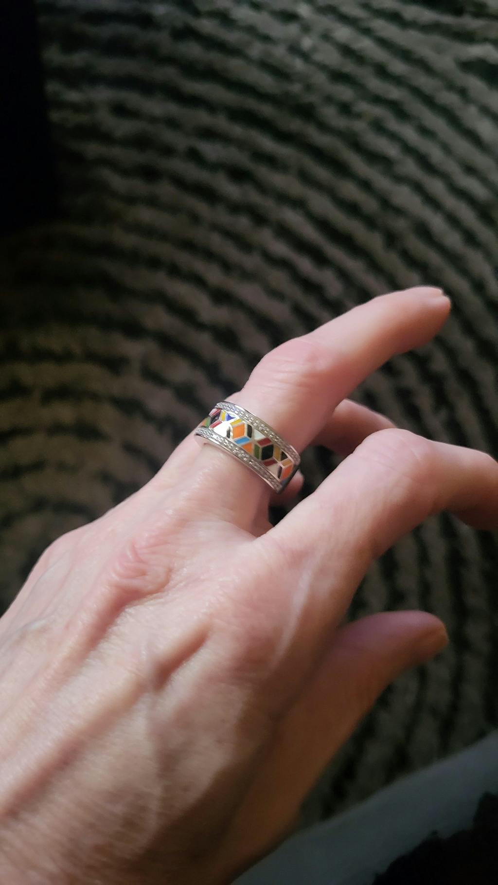 Entre France et Italie, cette bague italienne argent pour femme est une alliance de raffinement et d'élégance. L'anneau en argent conjugue pureté et fantaisie entre diamants et mosaïque de couleurs, rehaussée par un fond blanc sur toute la bague. Cette bague italienne argent est une pièce sublime portée avec des boucles d'oreilles italiennes ou des bijoux or rose comme un bracelet jonc. Associée à un pendentif argent Italie pour femme, cette bague pour femme offre subtilité et discrétion. Elle peut aussi composer une parure argent avec d'autres bijoux, comme un bracelet large coloré ou un ensemble de bagues. Seule, votre bague italienne argent révélera toute sa beauté, et pourra faire office de bague de fiançailles. Monsieur, dévoilez vos sentiments pour la femme de votre vie en lui offrant cet anneau en bague de fiançailles. Cachez la bague dans une rose, et laissez votre femme révéler la brillance des pierres sertissant l'anneau. Si vous venez d'être papa, découvrez notre sélection de bijoux de naissance maman luxe à offrir à votre femme pour célébrer ce moment unique et lui montrer votre profonde gratitude.