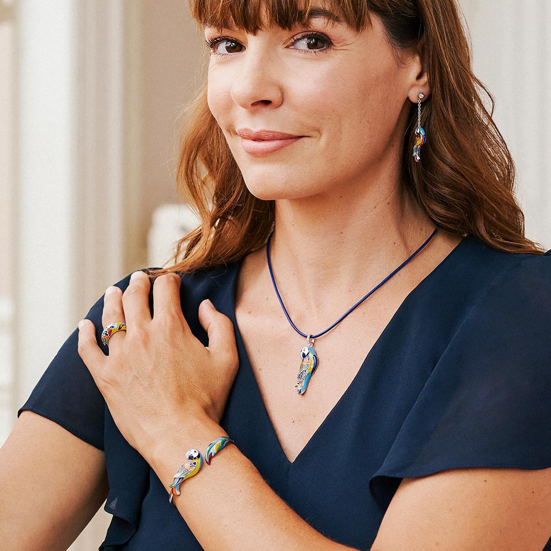 Lors d’un voyage lointain, vous avez découvert l’ara, ce magnifique perroquet de légende au plumage multicolore. Vous l’avez aussi aperçu sur un perchoir dans un zoo, brodé sur un linge fin ou encore peint sur un tableau de maître. Una Storia vous l’apporte sur un plateau sous forme de bague perroquet LoveBird.