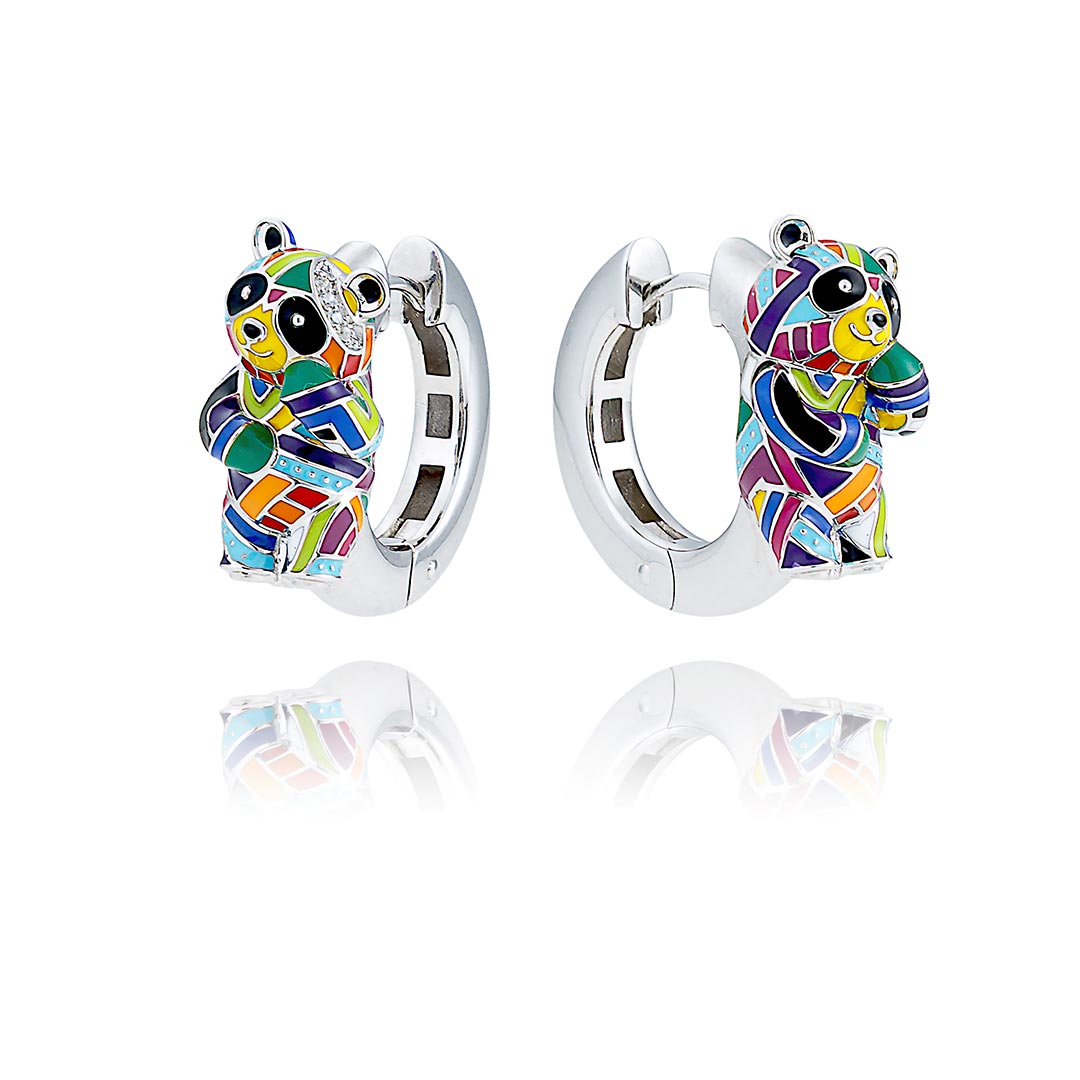 Les boucles d’oreilles Panda en argent pour femme sont des créoles raffinées en argent 925/1000 représentant un panda debout. Leur finition laquée et les oxydes de zirconium apportent luminosité et finesse, tandis que leur légèreté et leur composition hypoallergénique assurent un confort parfait au quotidien sans alourdir le lobe.