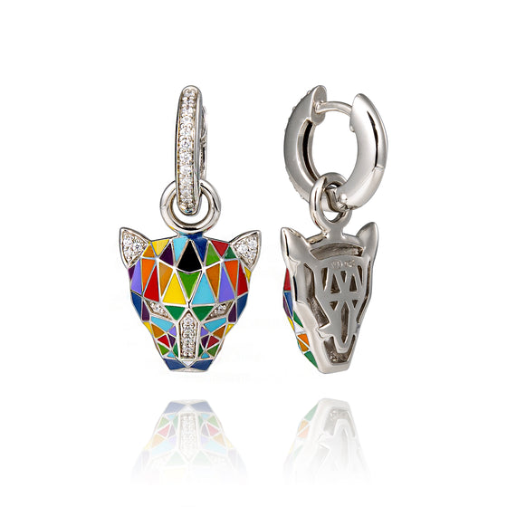 Les boucles d'oreilles pendantes Fauve en argent massif Una Storia donnent le ton avec ce félin.