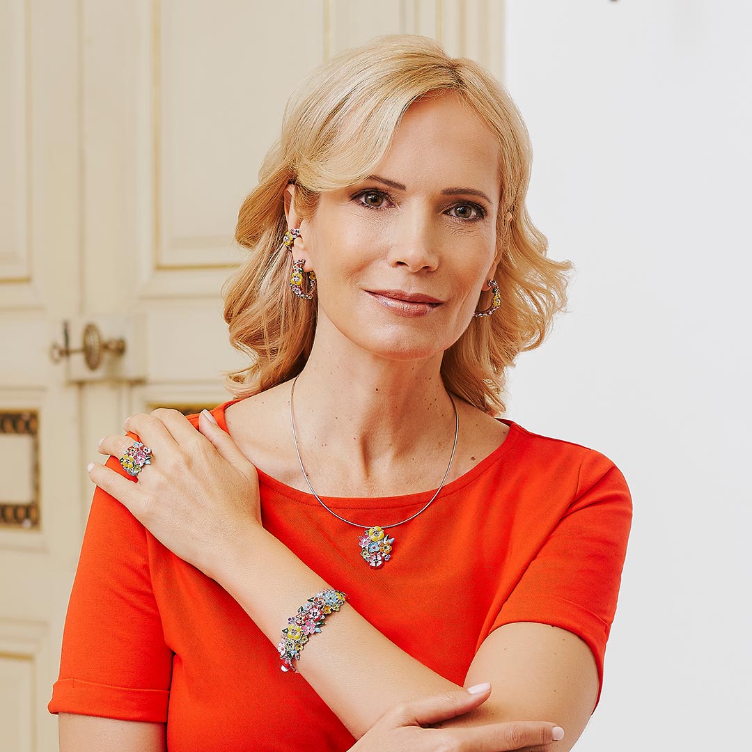 Le collier été pour femme des bijoux fleurs en argent est confectionné en argent 925 de qualité supérieure, sélectionné avec soin par nos artisans joailliers pour offrir une brillance incomparable et une résistance exceptionnelle. Ce bijou à porter en ras de cou célèbre la beauté des fleurs de Madère, le Jardin de l'Atlantique, et capture l’essence de cette île exotique. Les motifs floraux, magnifiquement sculptés, sont rehaussés de teintes éclatantes : rose, bleu, jaune et orange, rappelant les couleurs vibrantes des jardins ensoleillés de l'île. Vous vous demandez quel type de pendentif choisir ? Porter le collier été pour femme, c’est choisir un pendentif en argent massif pour femme Una Storia qui vous ressemble, qui s’accorde à votre personnalité et qui accompagne chacun de vos gestes avec élégance. Que vous soyez en mouvement ou immobile, ce nouveau pendentif fleurs Una Storia devient une extension de vous-même, révélant votre goût pour les pièces originales et audacieuses. Avec la parure Madeira, Una Storia réinvente l’art du bijou floral et propose des pièces qui s’harmonisent parfaitement avec les courbes de votre corps. Le collier été pour femme, tout comme le jonc large fleurs de la même collection, est pensé pour embellir vos mouvements et sublimer votre décolleté, tel un bouquet de fleurs porté à même la peau.