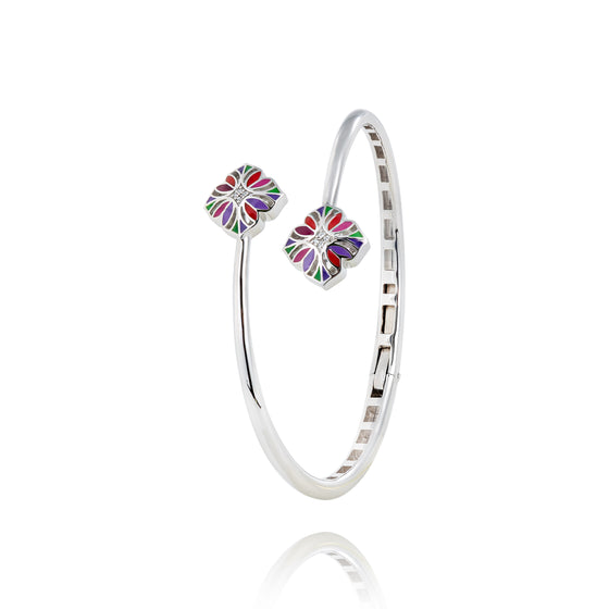 Pour celles qui sont pressées le matin, bracelet jonc ouvert argent pour femme Fleurs de Lys colorées est le bijou idéal. À la fois pratique, léger et design, ce bracelet jonc ouvert argent pour femme Una Storia aura tout pour plaire. Le passage se fait en positionnant la tranche de votre poignet à l'intérieur du bracelet qui s'écartera puis se refermera dessus sans rien actionner. Zoomez sur la photo du bracelet jonc ouvert argent pour femme pour découvrir en son centre intérieur un système ressort sophistiqué et sécurisé. Ornez votre bras de ce ravissant bracelet en argent pour femme en seulement quelques secondes.