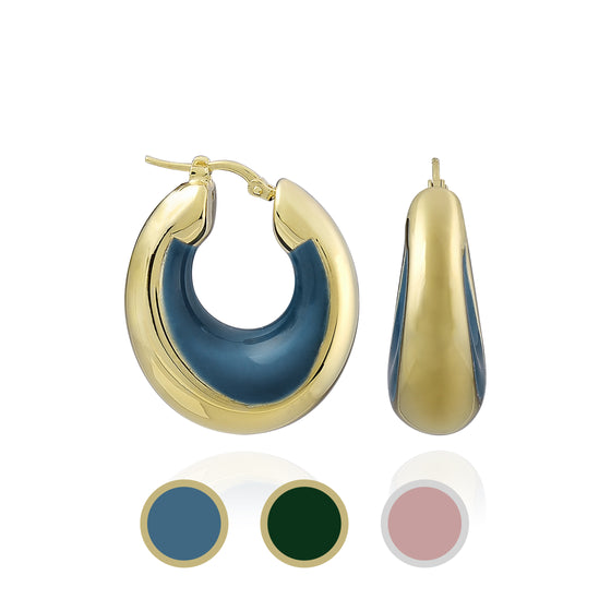 Portez tout le charme du sud avec les grosses créoles en argent doré Color Sicilia de notre joaillerie française Una Storia. Quelle couleur vous séduit le plus ? Avec quel vêtement porterez-vous l'une de ces paires de créoles originales pour femme ?