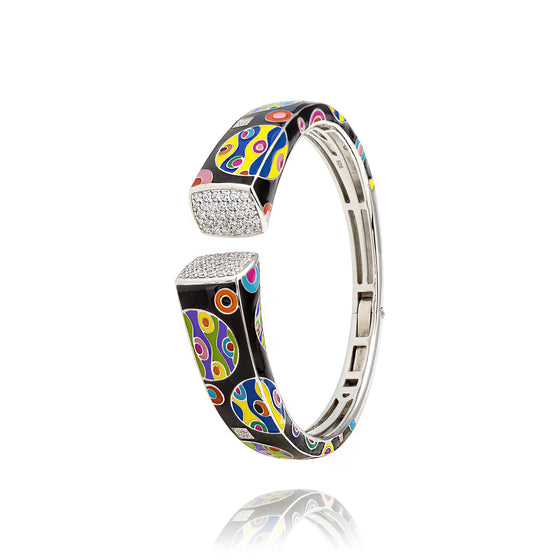 Ce gros bracelet constellation en argent massif de la collection bracelets en argent pour femme Una Storia est laqué à la main par nos joailliers. Inspiré par les étoiles, ce jonc coloré est très tendance pour cet été. Il vient parfaire une tenue vestimentaire composée d’une jupe en coton indien jaune uni assorti d’un top noir à fines bretelles et des sandales compensées pour compléter le tout. Parmi les joncs en argent Una Storia, ce bijou en argent pour femme peut faire l’objet d’un merveilleux présent à une femme chère à votre cœur comme celle partageant votre vie ou encore à votre sœur, votre mère ou votre meilleure amie. Ce jonc en argent massif rhodié fait partie de la nouvelle collection bijoux constellation en argent massif Una Storia 2023. Le gros bracelet constellation en argent massif s’enfile simplement à votre bras. Sa circonférence s’élargie vers le centre du bijou pour laisser deux cabochons carrés incrustés de pierres en oxydes de zirconium brillant comme de la poussière d’étoiles dans la voie lactée. Tout au long de ce ravissant bijou en argent 925 laqué, vous découvrirez des planètes aux formes géométriques et aux teintes vives et des astres lumineux de la galaxie reflétant la lumière du jour sur votre peau satinée. Si vous avez envie de d'assortir ce gros bracelet constellation en argent massif à d’autres accessoires pour affirmer votre allure élégante et mystérieuse, portez à votre doigt la bague constellation en argent 925 conçue sur les mêmes bases du bracelet.