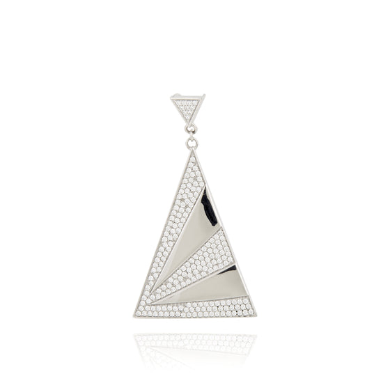 Le pendentif triangle argent Boréales Una Storia est un bijou en argent massif rhodié incrusté de pierres en oxydes de zirconium reflétant la lumière naturelle.